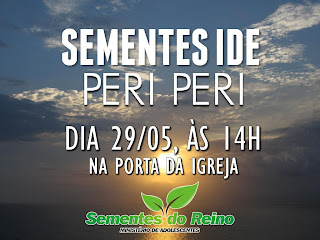 Sábado, depois do Culto de Santidade, teremos nosso primeiro "Papo Legal" às 18h, e domingo iremos para o Peri Peri pela segunda vez!